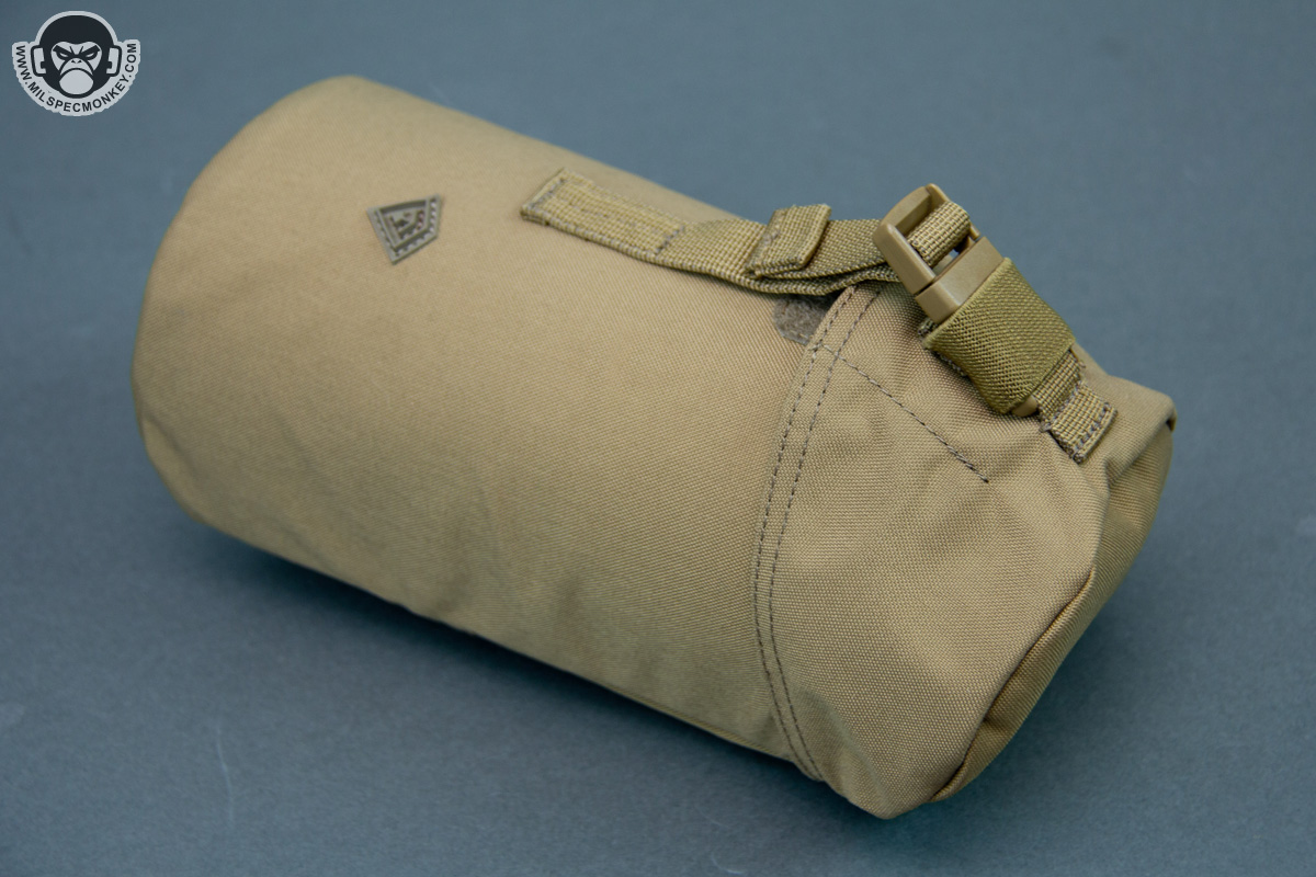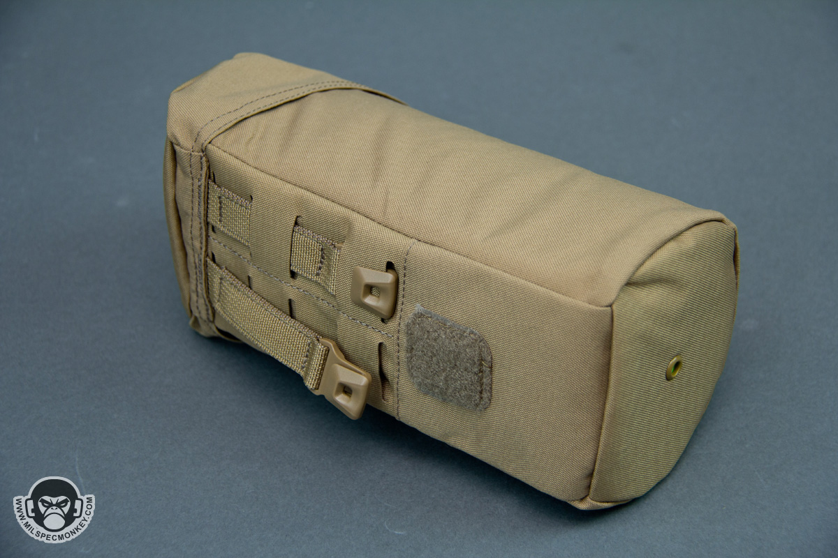 TACTIX SERIES BOTTLE POUCH – 1.0 LITER: It can hold a good variety of personal hydration bottles especially with modular padding factor. As a nice touch there is an SRB buckle closure for high retention and a hook and loop closure for a faster "on the fly" option. Thinking of the small details there is an interior loop piece to cancel out the hook when not wanting to use that closure mode. The cancel pad even has its own sleeve for storage. When not using the foam sleeve, there is an additional loop piece on the back to allow the whole pouch to be rolled up compactly while still mounted. I'm a little torn to see how little of connection space this pouch gets compared to the 6x10 pouch, but it seems a clear design choice to offer the fold up feature. I'd also like to see the lid a little larger as it can be pretty hard to get a good closure when in a hurry. The current semi-tight lid doesn't give much error tolerance for a proper closure covering the upper sides.