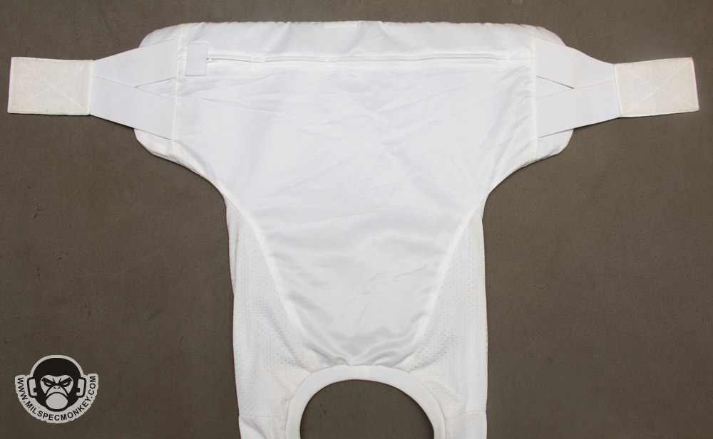 Noting smaller details, the zippers used to access the front and back armor insert zones are done in "invisible" zipper style, as one would see on many lady skirts. This way they generally are recessed so the slider hardware does not print(show through clothing). The rear even has an added elastic piece to cover the slider when in storage to assist in coverage / comfort while sitting down. On the front it isn't there since not really needed contact pressure wise and would get in the way of loop velcro connection points.