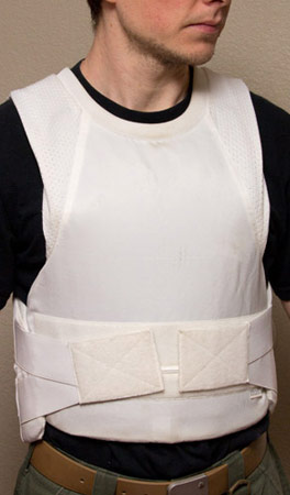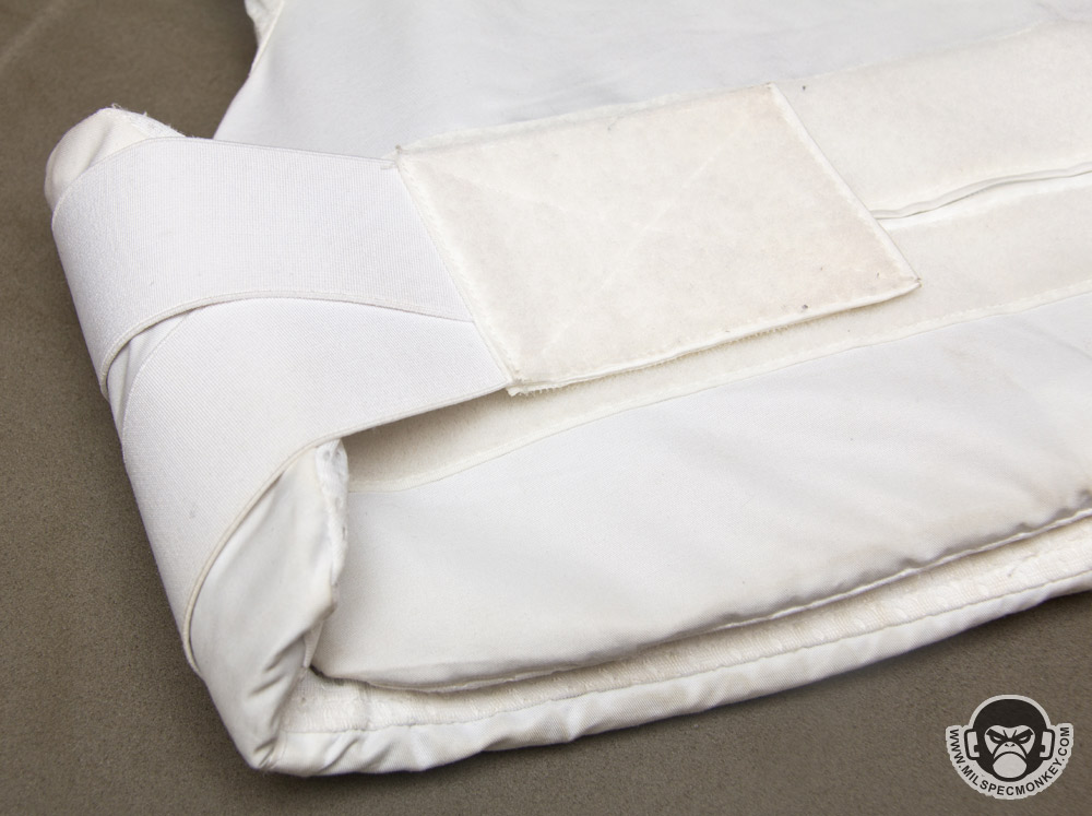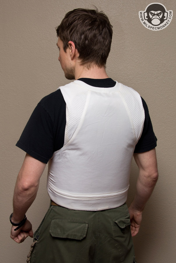 Back to specifically the carrier, offhand they offer white and black that should fit most folks needs. I think a grey in the future might be a good middle ground of concealability blending in with varied clothing types. When it comes to pretty much all white clothing, it is hard to keep it from not looking dirty with normal use. Fortunately the armor package can be removed from the carrier to allow washing of the carrier. The armor package has all these care warnings that make you worried to even look at it, but the general idea is don't machine wash it or keep out in a dumb place like on the dash of your vehicle. CoolMAX is used for the majority of the carrier which helps a bit with breathability. Air just isn't going to get through the armor, but the carrier material does give some stand off to let air sneak in to minimize sweating and help evaporate any existing sweat.