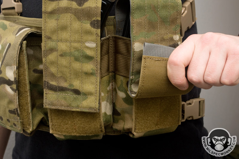For qualities both variants share; this includes 1" waist straps and 1.5" shoulder straps with SRB buckles for all. There is plenty enough strap slack and adjustment to fit a low or high ride on most folks. On top are also pull tabs to assist in accessing the middle slim pocket. This pocket includes a large 12" x 3" loop velcro field inside for further modular possibilities. Although the micro rigs shine most as chest rigs, the user is free to play with the supplied straps to turn them into shoulder bags or bandoleers as desired. Since SRBs are on every strap, in chest mode these rigs are easy to remove, however may take some practice quickly putting on. I recommend experimenting with consistently having one side of straps connected with as few straps released as possible that will still allow donning. As with all OSOE products, the build quality is great on these items.
